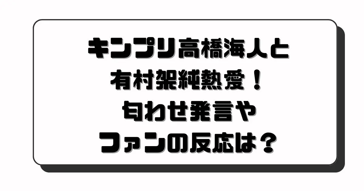 今回は、キンプリ高橋海人さんと有村架純さんの熱愛報道や匂わせ発言、ファンの反応をまとめました。
