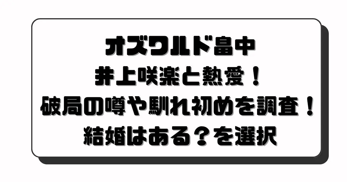 今回はオズワルド畠中さんと井上咲楽さんの熱愛報道について、馴れ初めや破局の噂、結婚の可能性などを中心にご紹介しました!