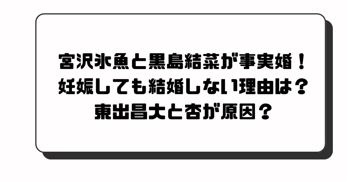 今回は宮沢氷魚さんと黒島結菜さんが妊娠しても結婚しない事実婚の理由や、事実婚には東出昌大さんと杏さんが原因なのか調査しました。
