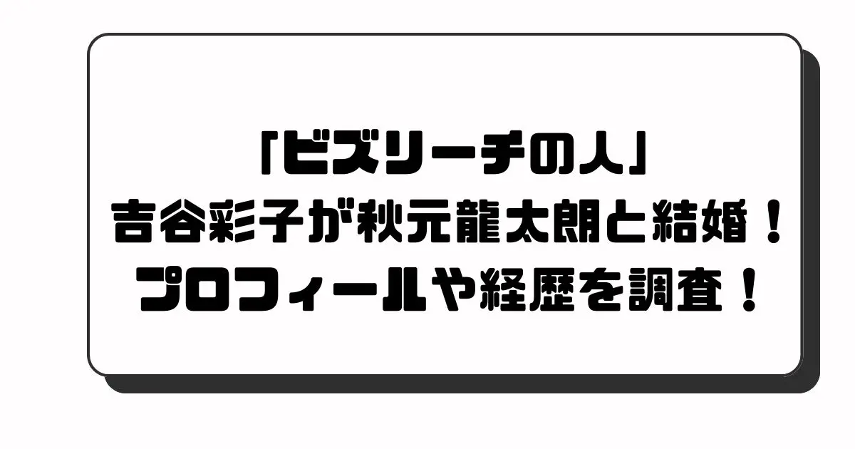 このふたりの華やかな結婚に迫りながら、ビズリーチのCMがなぜ注目を浴びたのか、そして吉谷彩子さんと秋元龍太朗さんの馴れ初めからプロフィール、経歴までを詳しく調査していきましょう。