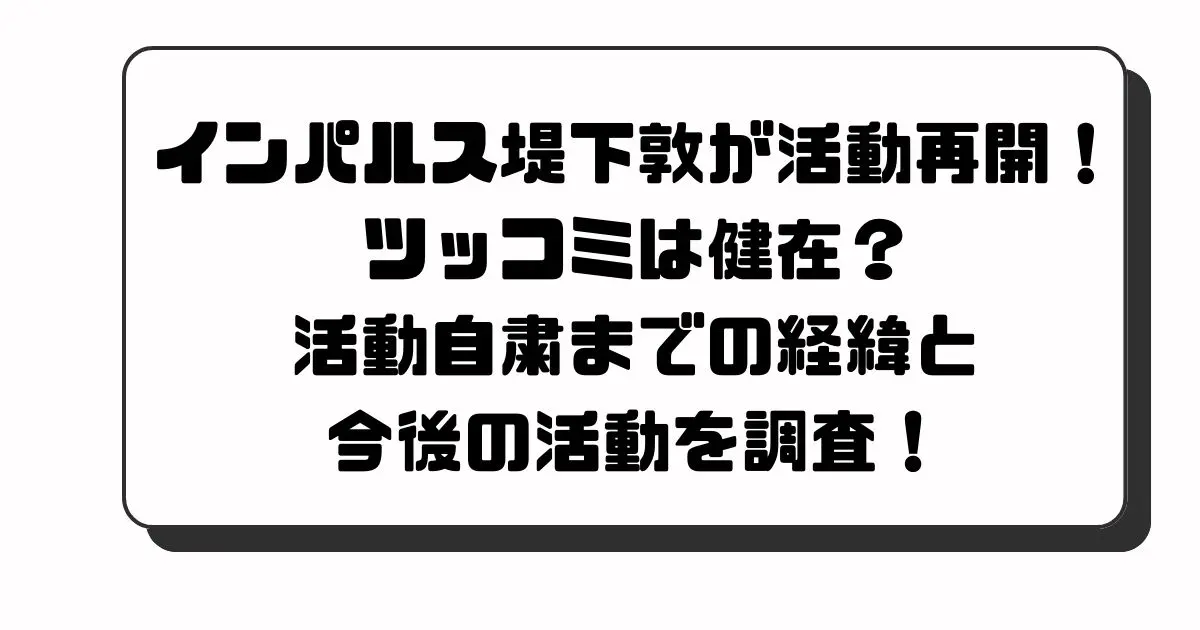 今回はインパルスの堤下敦さんの復帰についてまとめました。