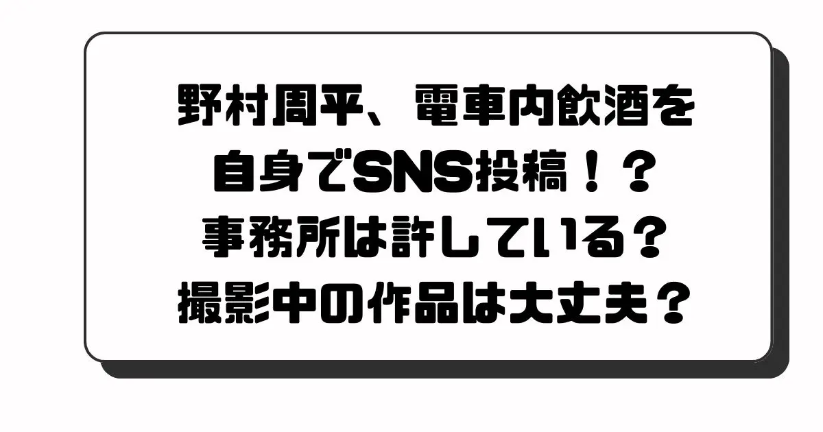 今回は野村周平さんの、電車内飲酒をSNS投稿した経緯や事務所の反応、撮影中のドラマへの影響などについて調査してみました!