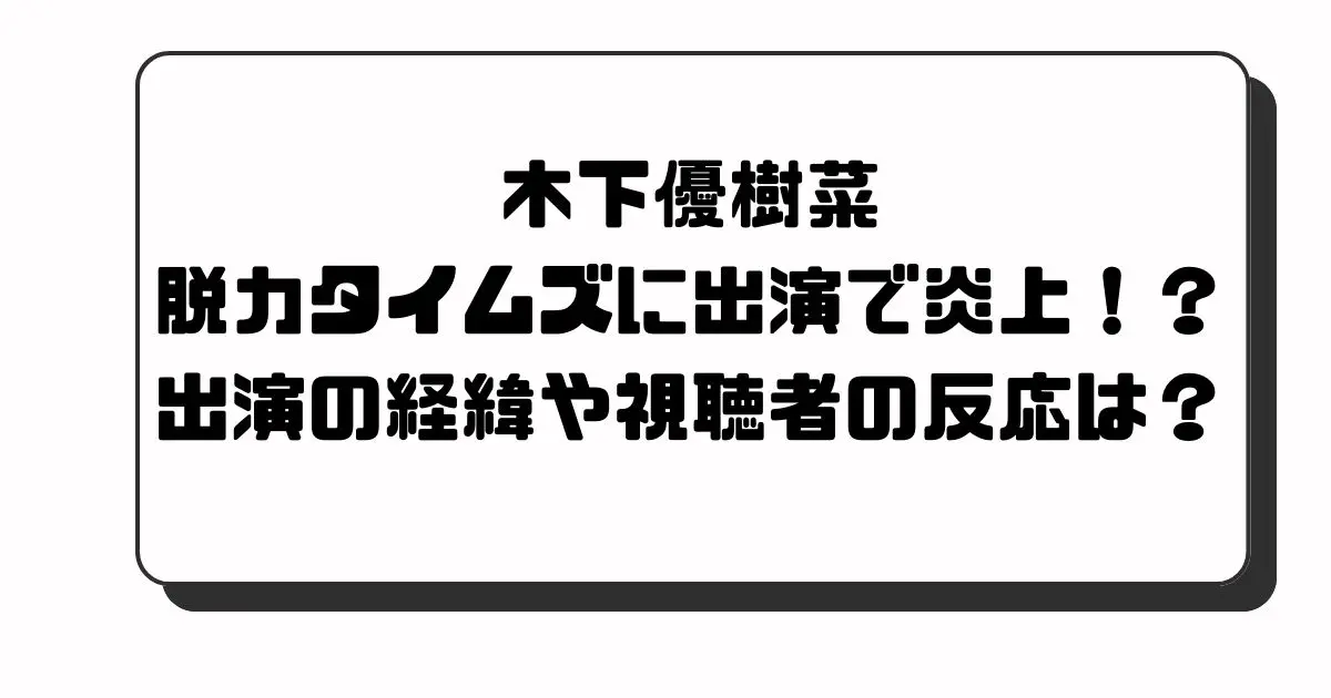今回は木下優樹菜さんが「脱力タイムズ」に4年ぶりに出演となった経緯や視聴者の反応をお伝えしました。