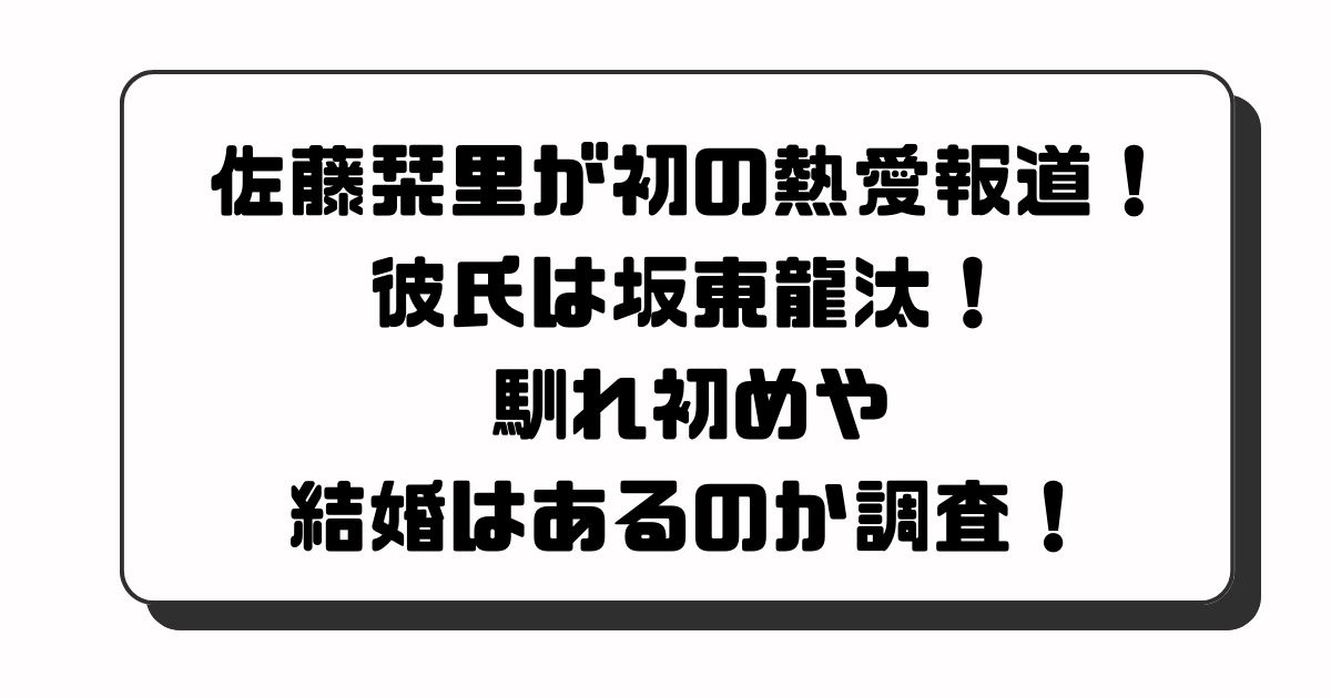 今回は佐藤栞里さんと坂東龍汰さんの交際について紹介しました。