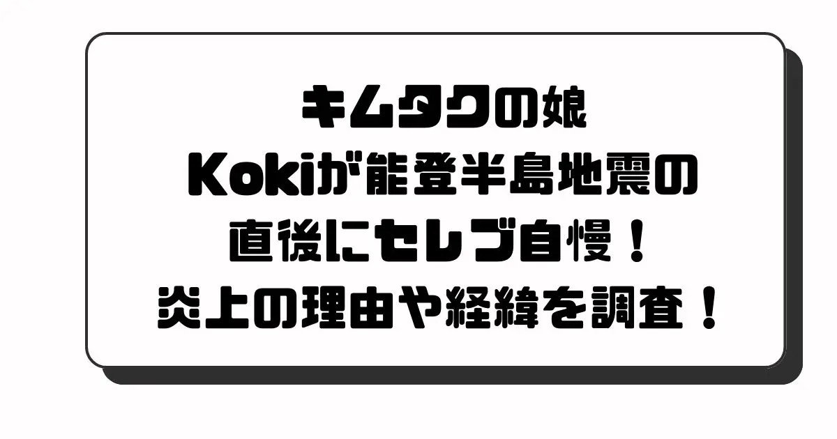 モデルとして世界でも活躍しているKokiさんですが、実は2024年1月1日に起こった能登半島地震の直後に投稿したInstagramの内容で炎上していた事がわかりました。
