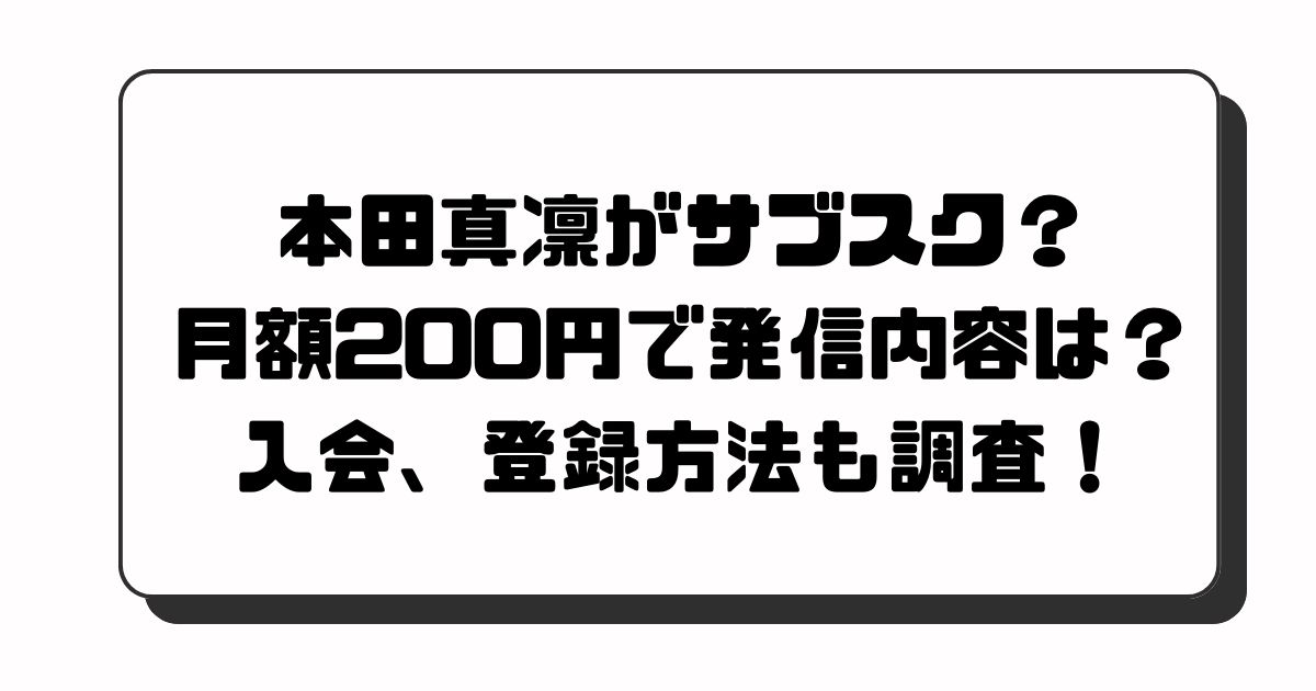 今回は本田真凛さんのサブスクを始めた経緯やその内容について、探ってみたいと思います。